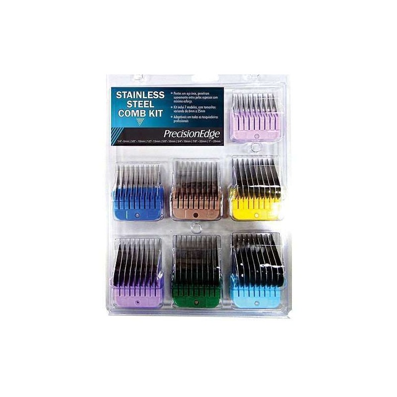 Os novos pentes adaptadores profissionais da PrecisionEdge possuem um encaixe fácil, deslizando facilmente nos pelos e proporcionando um corte macio e preciso.