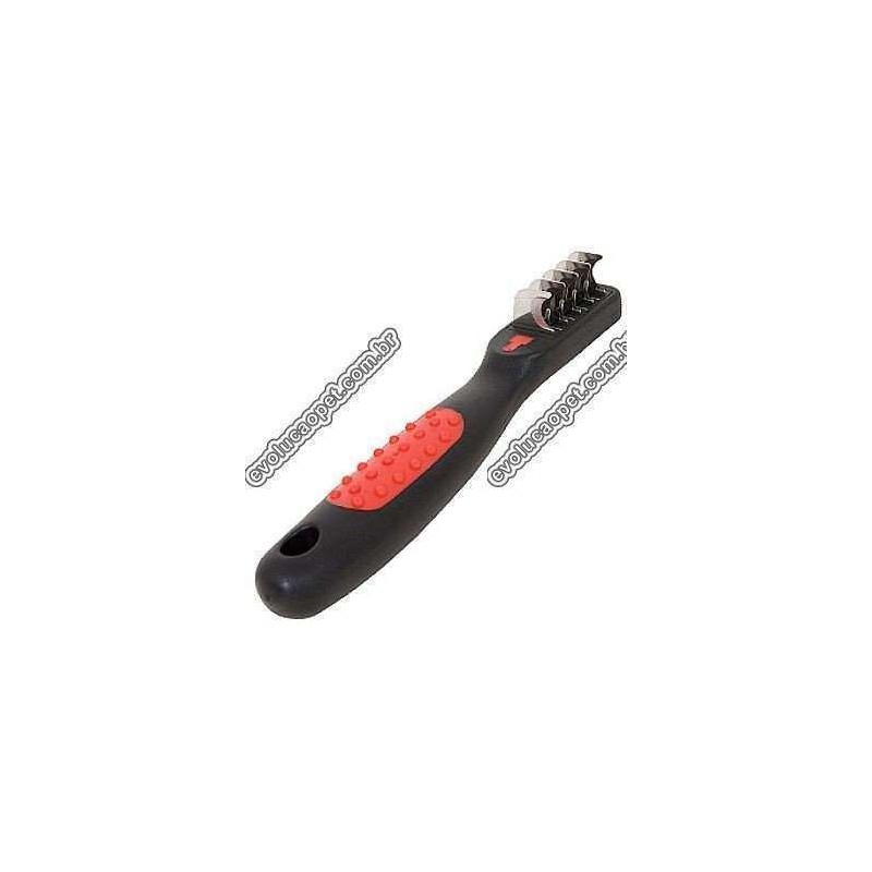 •       Apresenta 5 lâminas destinadas ao corte dos pêlos embolados, afiadas internamente de modo a evitar cortes nas peles dos animais.