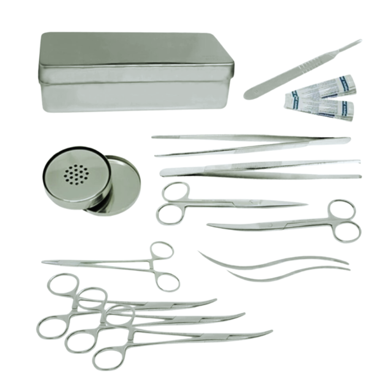 O Kit Básico de Sutura para Grandes Animais é composto de instrumentos cirúrgicos específicos para tal procedimento, além de procedimentos em geral de menor complexidade.