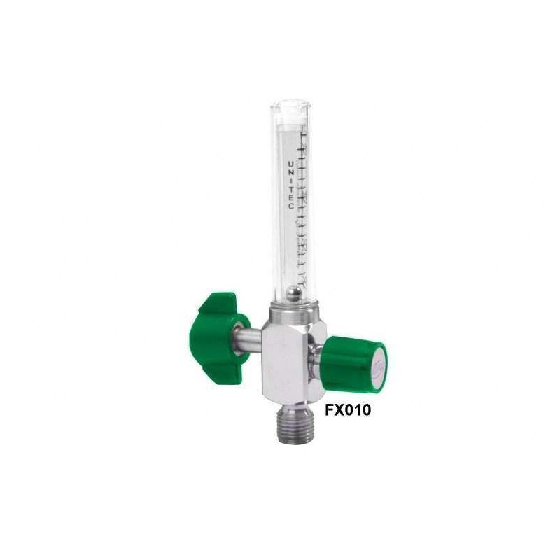 Fluxômetro de Oxigênio com corpo de metal cromado (latão), bilha externa e interna em policarbonato.
