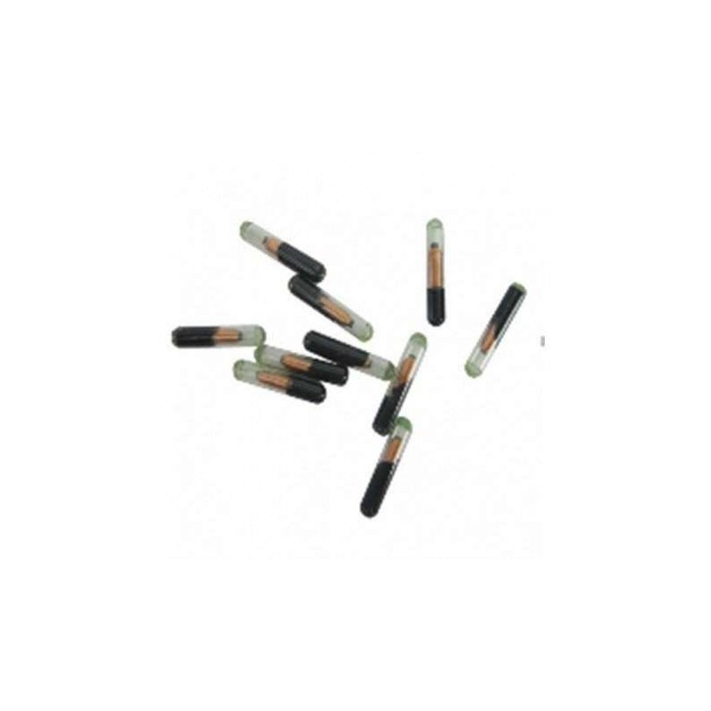 MicroChips GRANEL:  Transponder (Microchip) ISSO FDX-B, 134,2 Khz, com camada anti-migratoria (Parylene C), medindo  aproximadamente 12mmx 2mm encapsulado em  Bio-Vidro , a Granel, Não esterilizado.