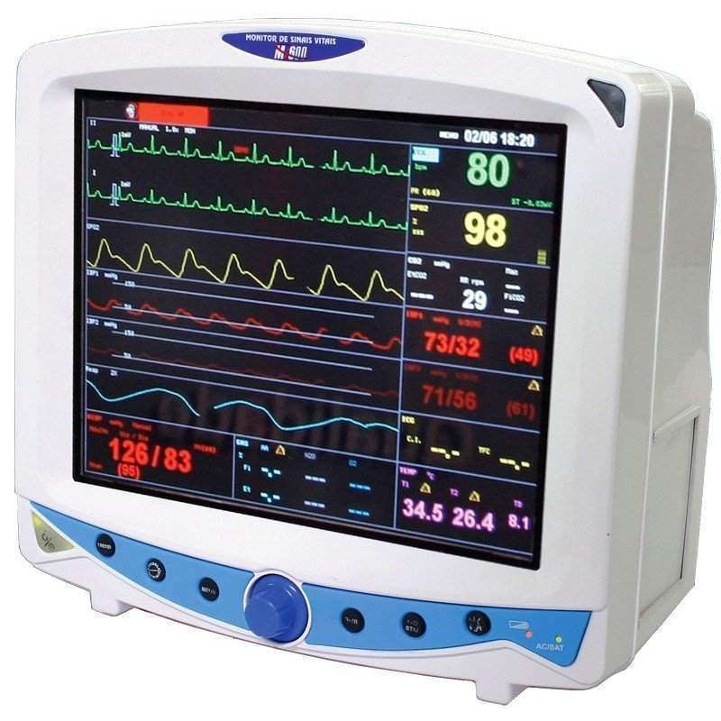 ECG, BPM, ST, PNI, SpO2, 2 TEMP (com 1 Sensor), 1 Bateria |