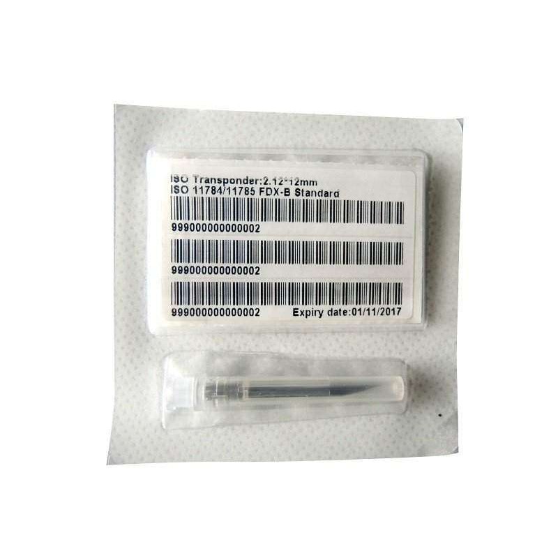As informações guardadas na memória podem ser consultadas e/ou alteradas com o microchip implantado no animal. Acompanhado de 6 etiquetas de código de barras.