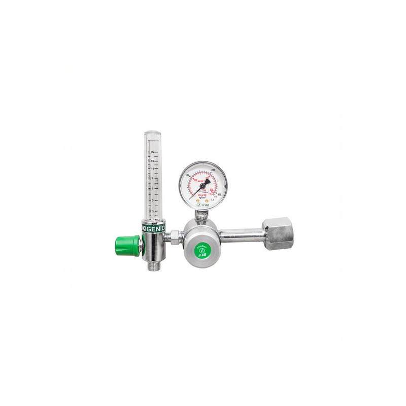 Válvula Reguladora para Cilindro de Oxigênio com fluxômetro fabricada em metal cromado (latão), rosca de entrada universal ,e manômetro