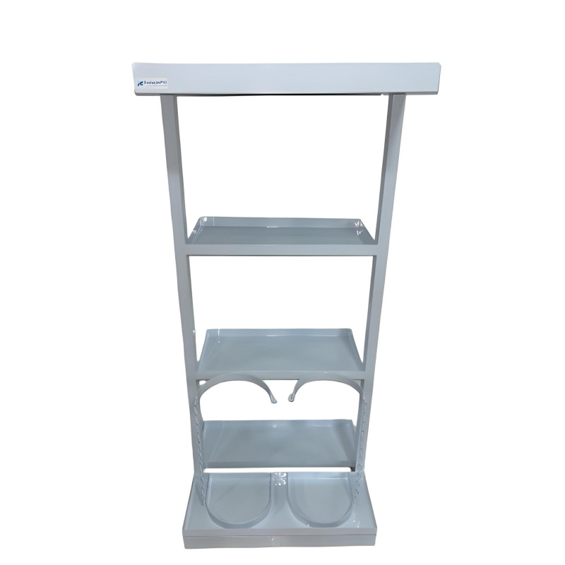 Estante para aparelho de anestesia totalmente esmaltada com três prateleiras e compartimento para dois cilindros