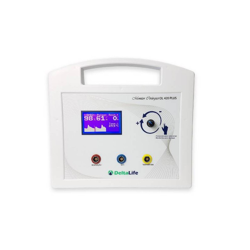 O Monitor DL 420 plus monitora os sinais vitais do paciente, possuindo 5 parâmetros integrados. Sendo exclusivo no mercado com o parâmetro respiração, que é detectado pela inspiração e expiração do paciente, o DL 420 possui alarmes sonoros e visuais configuráveis com máximo e mínimo, um monitor de 4.5 polegadas com display de alta resolução, acompanha todos os cabos.