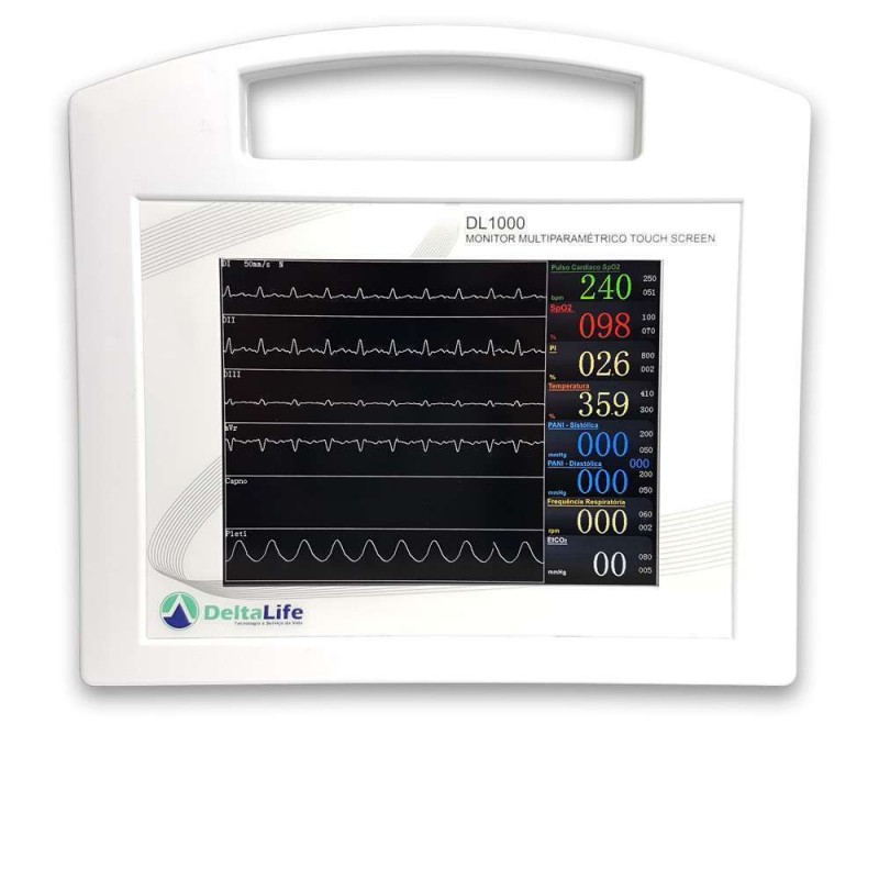 O Monitor Multiparamétrico DL1000 é um Touch Screen de alta resolução.