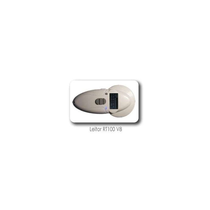 O Leitor RT 100 V8 versão Bluetooth permite o envio de dados lidos pelo V8 ou armazenada em sua memória (até 1000 números). A função de transmissão Bluetooth não está habilitada permanentemente para reduzir o consumo de energia e aumentar a vida útil da bateria.