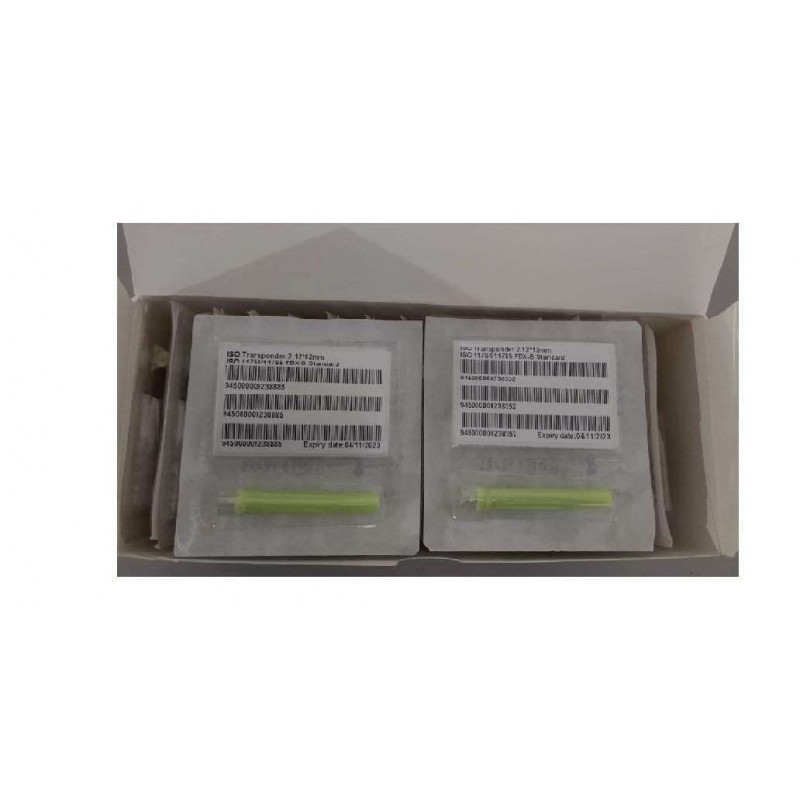 As informações guardadas na memória podem ser consultadas e/ou alteradas com o microchip implantado no animal. Acompanhado de 6 etiquetas de código de barras.