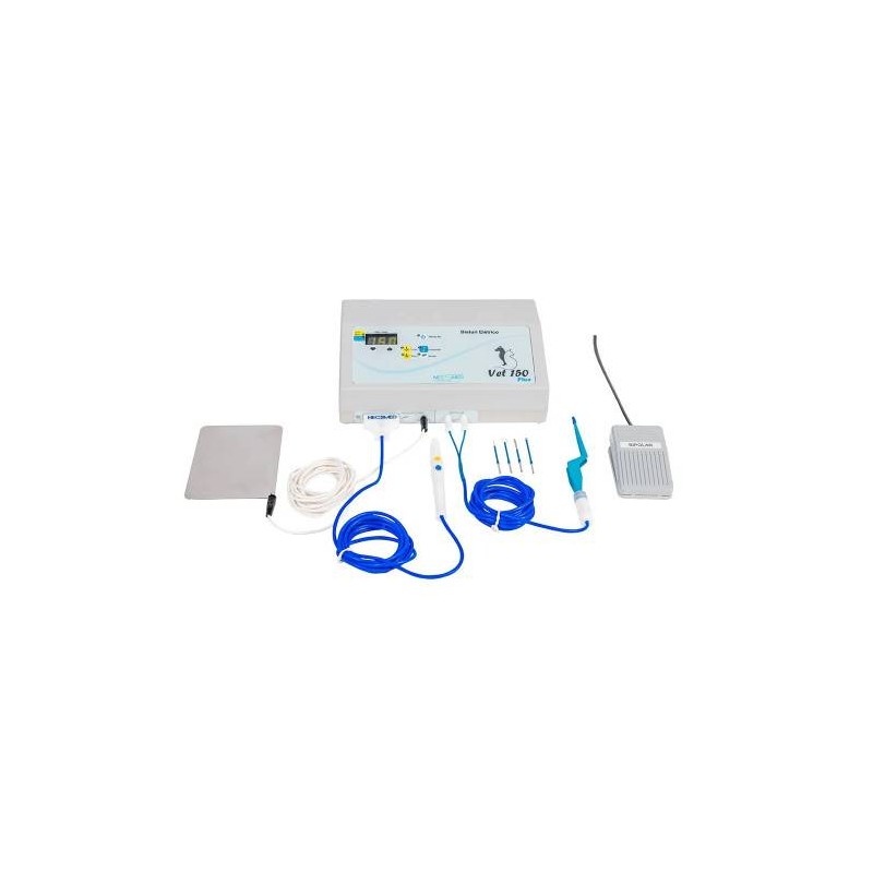 VET150 Plus é um equipamento cirúrgico de alta frequência, totalmente microprocessado, que pode ser utilizado em qualquer tipo de cirurgia Veterinária. Testado em um grande número de cirurgias, equipamento seguro e de manuseio extremamente simplificado. Possui formas de onda e níveis de potência de saída adequados a cada procedimento cirúrgico, produzindo corte liso e coagulação por fulguração altamente eficiente.