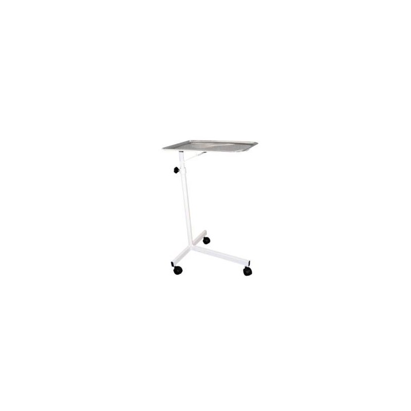 Tampo em aço inoxidável, pés em aço esmaltado. Com altura regulável e rodízios.