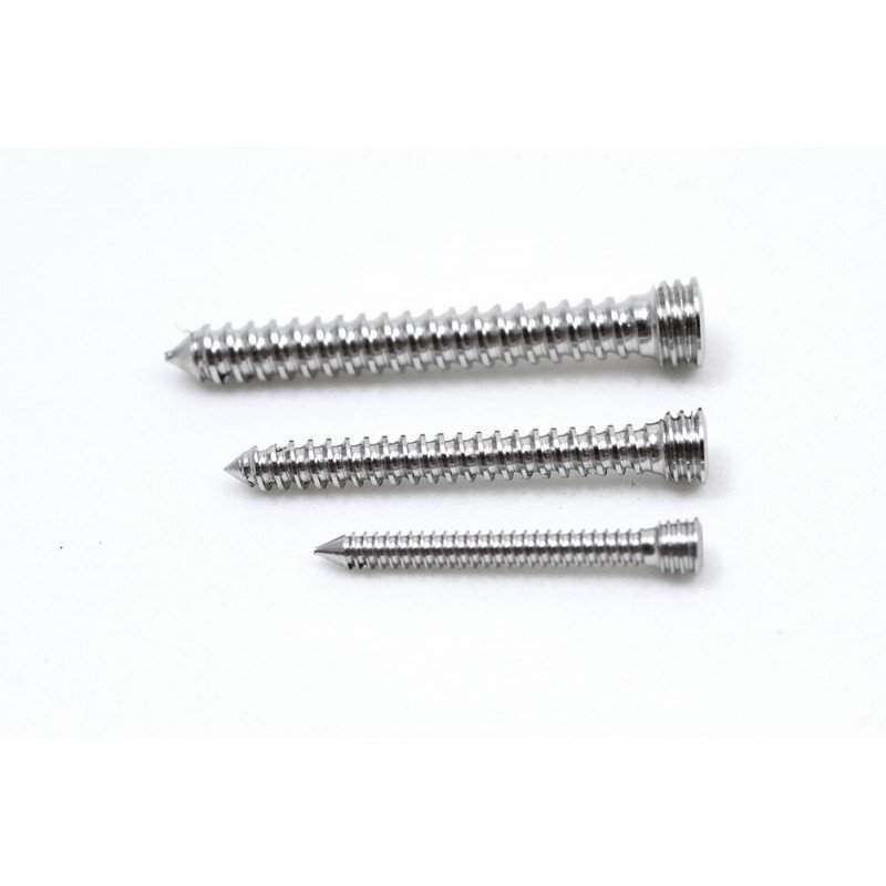 Parafuso cortical fabricado em aço inox cirúrgico.