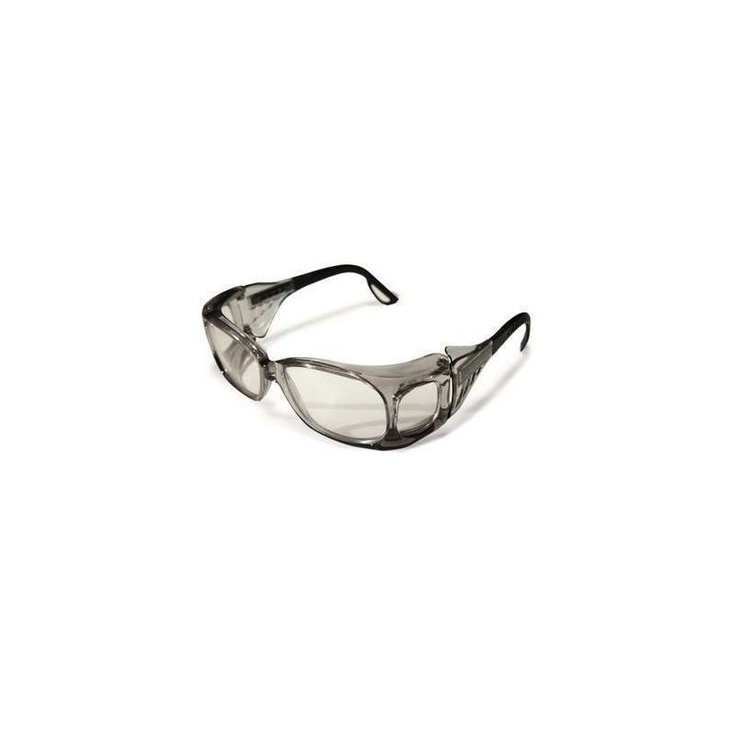 Possuindo lentes de vidro plumbífero com 0,75mm de chumbo, com proteção frontal (ou proteção frontal e lateral), haste retrátil e ajustável, armação em acrílico acetato com fácil adaptação no rosto do usuário.